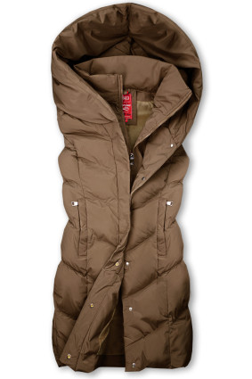 This long brown vest combines elegance and comfort, making it the perfect choice for everyday wear, work, or special occasions. The sleeveless, classic cut beautifully accentuates the silhouette and pairs easily with various wardrobe pieces. Made from high-quality fabric with a dominant polyester content, it ensures durability and easy care, while the inner lining provides all-day comfort. The smooth surface and lack of fastening give the vest a modern, timeless look. Its practical length and standard fit guarantee freedom of movement. Machine washable at 30°C. Perfect for both elegant and casual outfits. Composition: polyester (95%), elastane (5%).