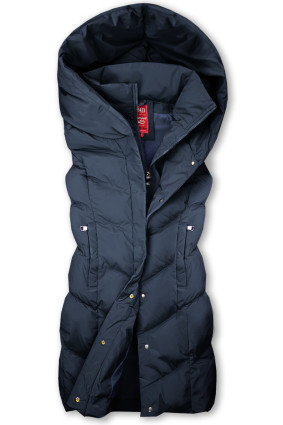 This stylish navy blue knitted vest is the perfect choice for everyday wear during the autumn and winter seasons. Made from soft polyester, it offers comfort and easy care – machine washable at 30°C. The vest features a standard length, sleeveless and hoodless design, and practical pockets for daily convenience. The textured material adds a modern touch, making it easy to combine with various wardrobe pieces. Ideal for a casual look, without fastening, in a standard size. Combines comfort and style in one piece. Composition: polyester (100%).