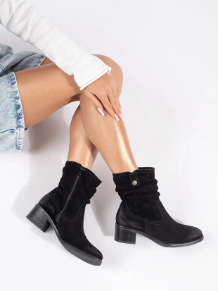 Discover the perfect blend of style and comfort with our black suede ankle boots. These elegant shoes are made from eco-friendly suede, providing a luxurious look while being kind to the environment. With a full toe and built-in heel, they are ideal for everyday wear, while the 15 cm shaft height and 28 cm shaft width ensure a comfortable fit. Thanks to the insulation and textile insole, they are an excellent choice for cooler autumn and winter days. Without a heel and featuring a practical side zipper, these ankle boots are easy to slip on and can be paired with various outfits. Whether you're heading out for a stroll in the city or meeting friends, these boots are the perfect addition to your wardrobe.
